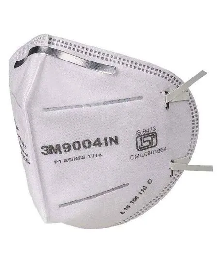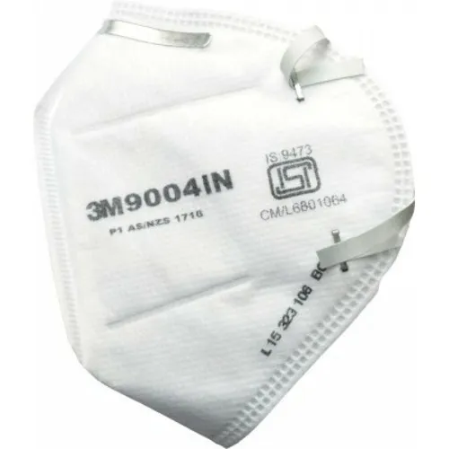 The 3M 9004IN Particulate Respirator is a top-selling disposable face mask designed for effective respiratory protection against fine dust particles. It features a durable cup-shaped design, an aluminum nose clip, and a neoprene elastic band to ensure a secure and comfortable fit on any face.