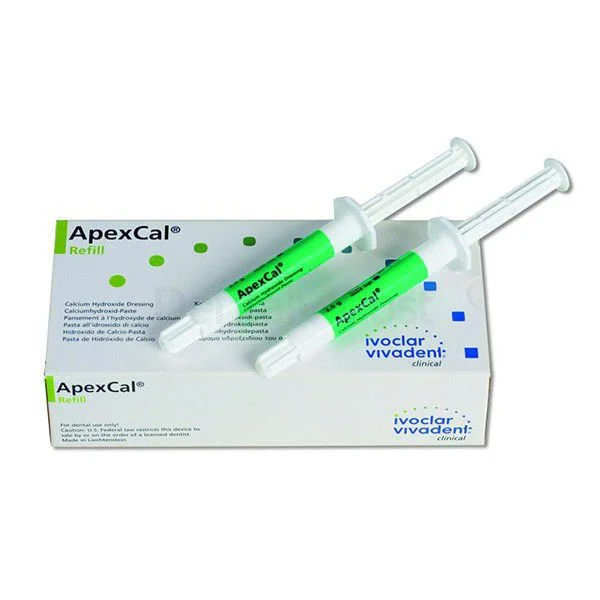 The creamy ApexCal calcium hydroxide paste is used to place temporary disinfectant dressings in the obturation of root canals. ApexCal can also be used in indirect and direct pulp capping.