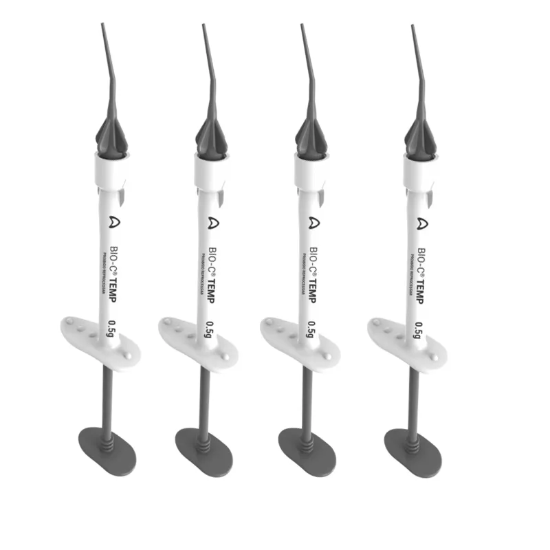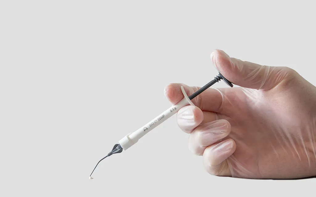 Bio-C Temp from Angelus is a ready-to-use bioceramic tricalcium silicate paste for intracanal dressing allowing high performance in fewer sessions. It is advantageous to calcium hydroxide pastes because its low solubility allows it to be in contact with the canal walls for a longer period of time. As a result, this allows for a continuous and gradual release of hydroxyl (OH-) ions. Bio-C Temp is available in a syringe with a silicone cap and uses applicator tips specially developed for this product. The silicone cap effectively protects from external environment moisture, preventing premature hardening. The applicator tips are pre-curved and with adequate length, which facilitates application in areas with difficult access.