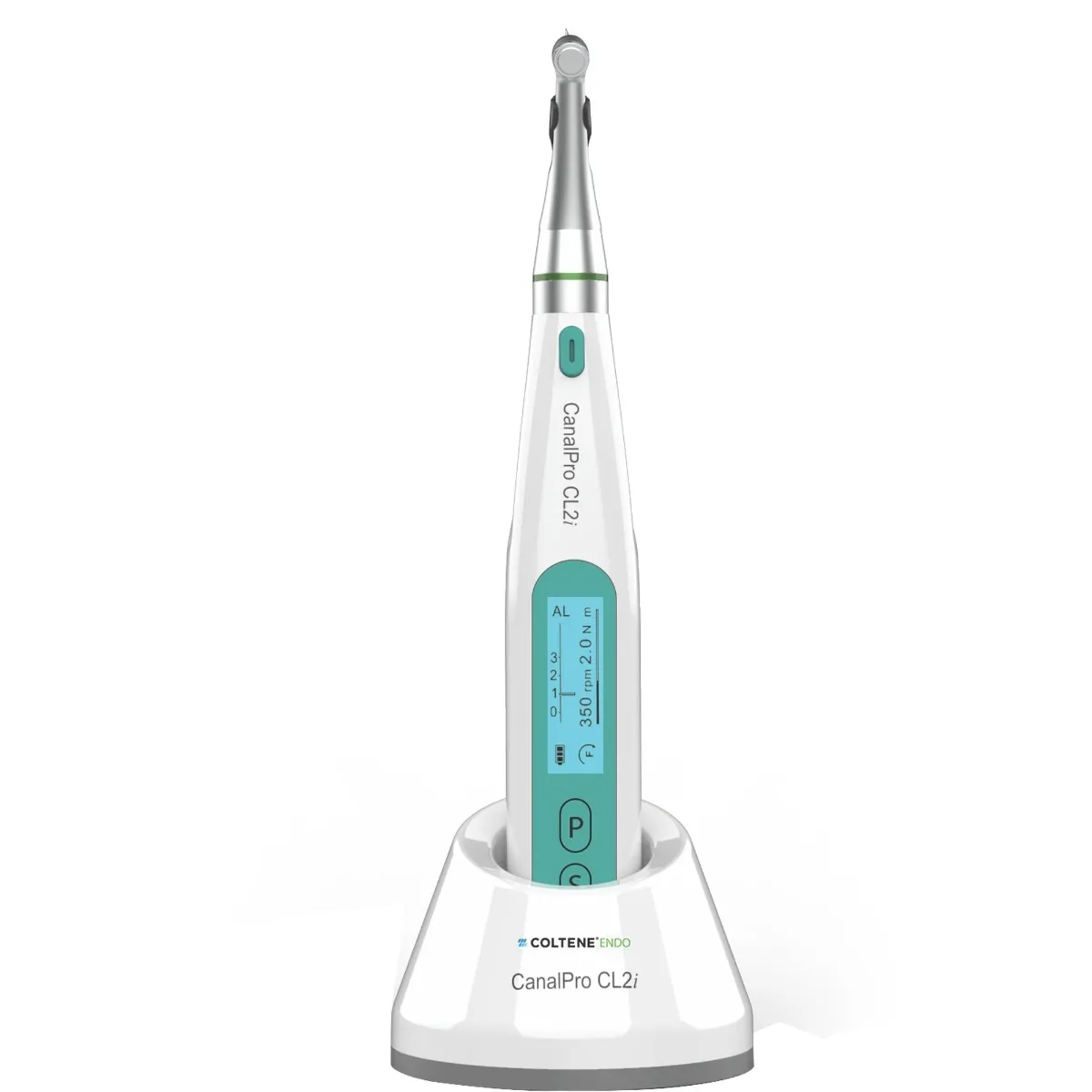 The Coltene Canalpro CL2i Is A Compact, Cordless Motor With A Built-In Apex Locator. It Can Be Used For Obtaining Apical Patency And Creating A Glide Path Using Rotary Instrumentation. The new cordless endodontic handpiece CanalPro CL2i has been ergonomically designed to provide a clear view and unobstructed access in all treatment situations. The clear LCD and the user-friendly, easy-to-clean keypad simplify day to day clinical work. The Handpiece Allows Subtle And Delicate Manipulation Of The File, Corresponding To The Movements Of An Experienced Dentist’s Hand. Depending On The Load On The File, The Motor Alternates Between Forward And Reverse Rotation With Exceptional Sensitivity To Greatly Reduce The Chance Of Jamming Or File Breakage. It Is Also Superior In Its Ability To Follow The Shape Of Even Curved Canals To Reduce Ledges And Perforation.
