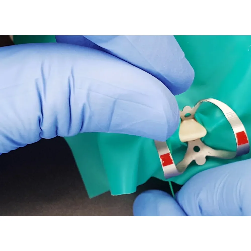 • Color-coded: The clamps are color-coded based on tooth size and shape, which makes it easy for dental professionals to select the right clamp for a specific tooth.
