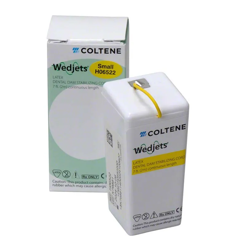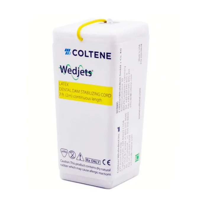 - Wedjets stabilizing cords are rubber cords that are intended to be placed in-between teeth to secure a dental dam sheet in place.