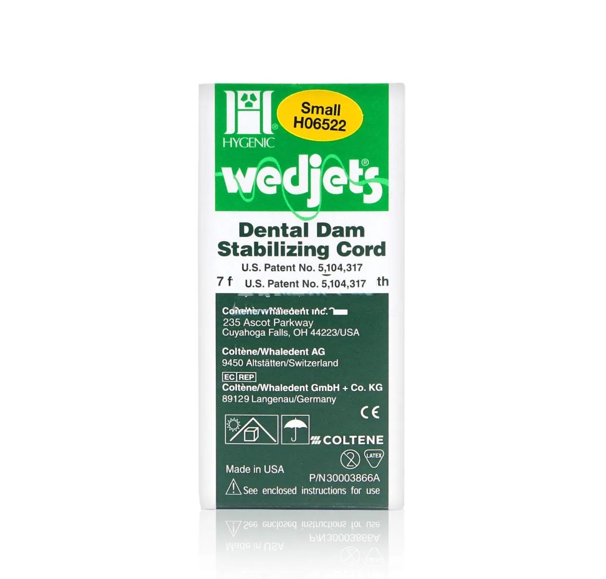 Wedjets elastic stabilizing cord provides a quick and easy way to retain dental dam and can complement or supplement clamp usage. Wedjets are intended for single use