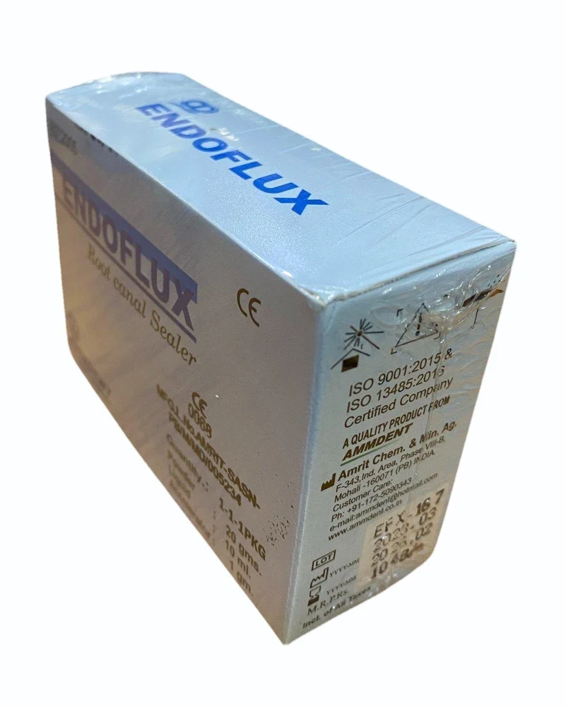 Ammdent Endoflux Root Canal Sealer Is A Calcium Based Root Canal Sealer.an Accelerator Is Provided To Decrease The Setting Time.composition Zinc Oxide Calcium Hydroxide Eugenol Iodoform Parachlorophenol Barium Sulphate Features Stimulation Of The Periapical Tissues In Order To Maintain Health Or Promote Healing For Its Antimicrobial Effects. Calcium Hydroxide Denatures….