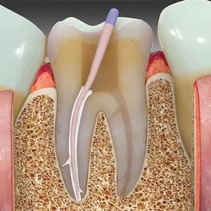The thickness of film is 3-5 µm, what allows antiseptic to penetrate in microtubules and root canals furcations. Paste can be used for filling with gutta-percha points. Eugenol, slightly melt the surface of gutta-percha points, stick them together thus allowing to fill the canal thoroughly and isolate it from microorganisms.