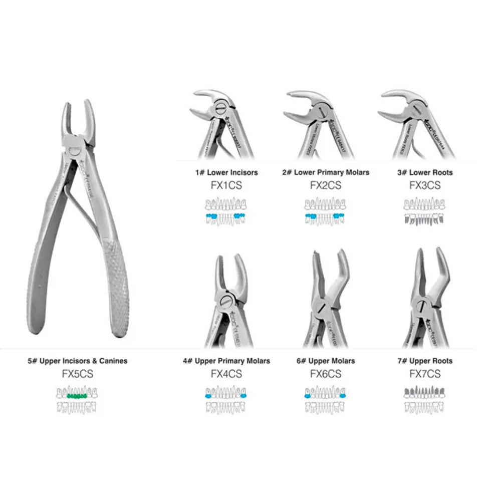 - Precise Design:Â Each forceps in the set is uniquely designed to accommodate the specific anatomy and positioning of baby teeth, ensuring a secure grip and controlled extraction.