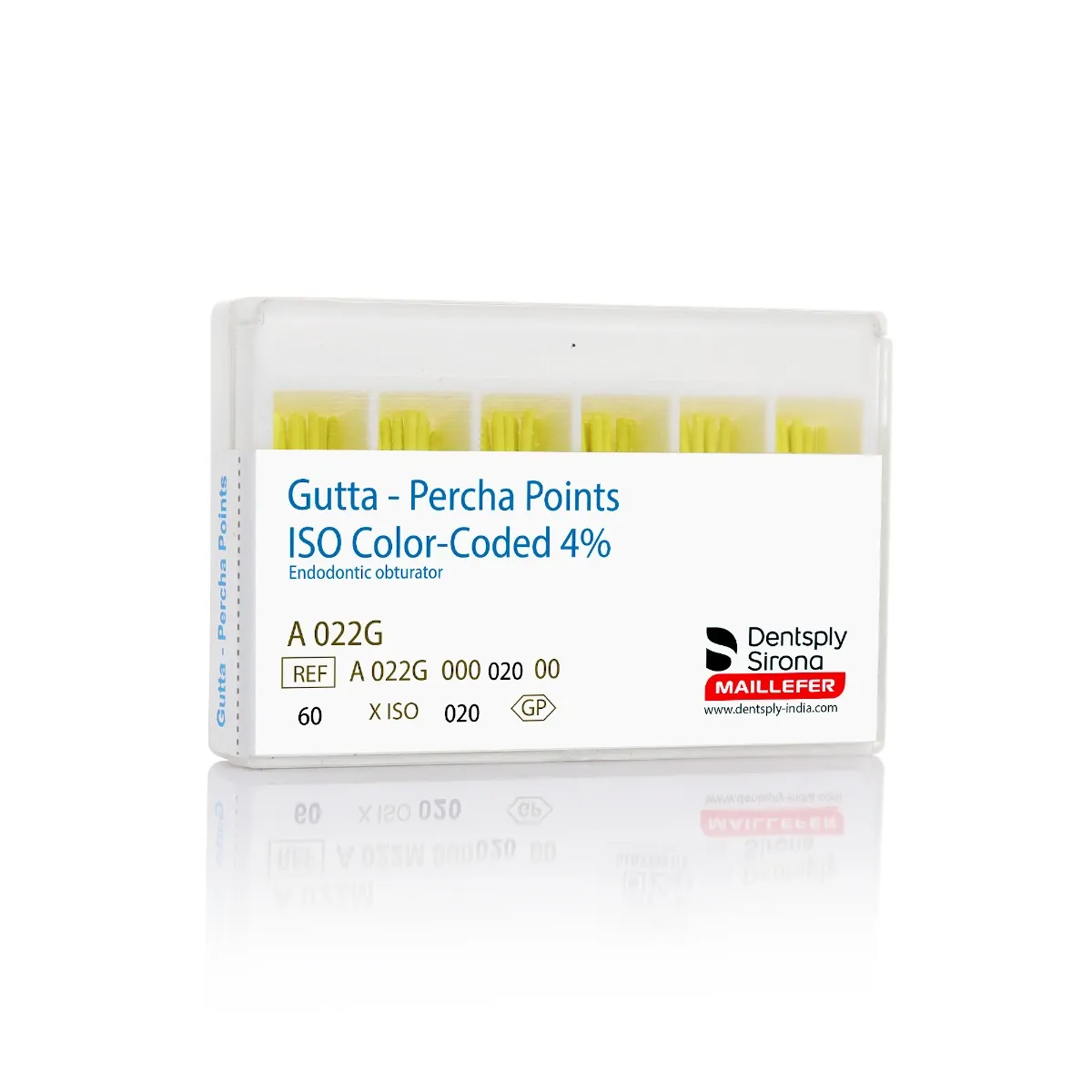 Dentsply Gutta Percha Points 4% Taper are high-quality materials designed for effective root canal obturation. Made from biocompatible gutta-percha, these points are available in sizes according to ISO standards, with tapers of 2%, 4%, and 6%, ensuring a precise fit for modern rotary endodontic file shapes.