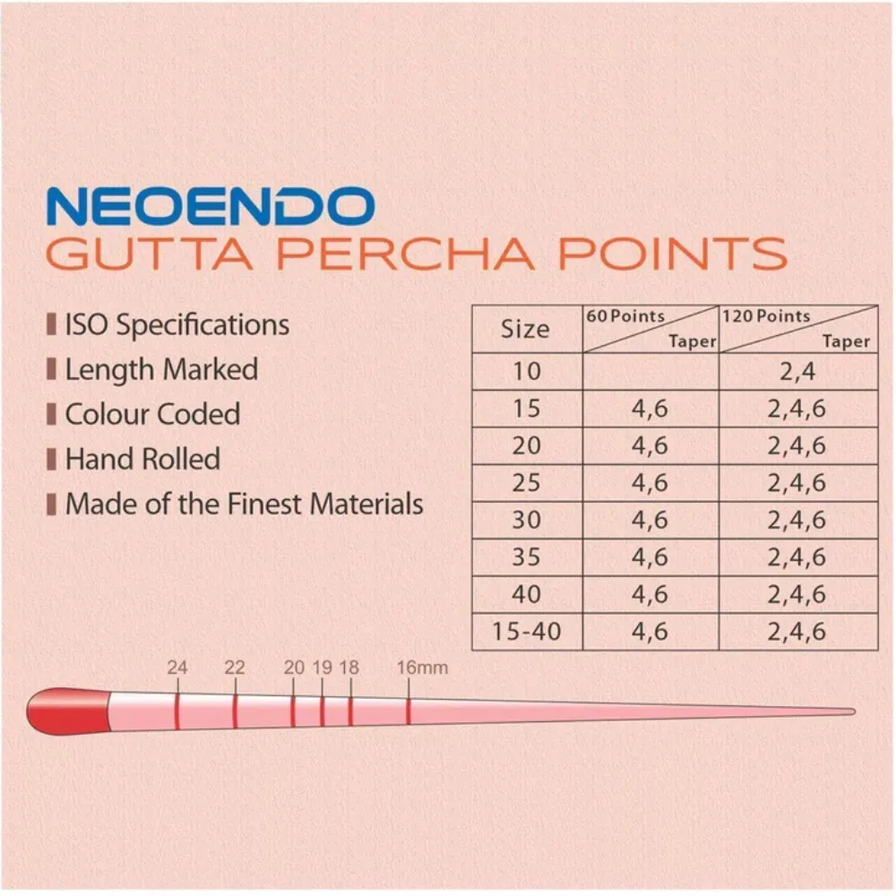 • Pack of 60 Neoendo Gutta Percha Points 6% (Length Marked)