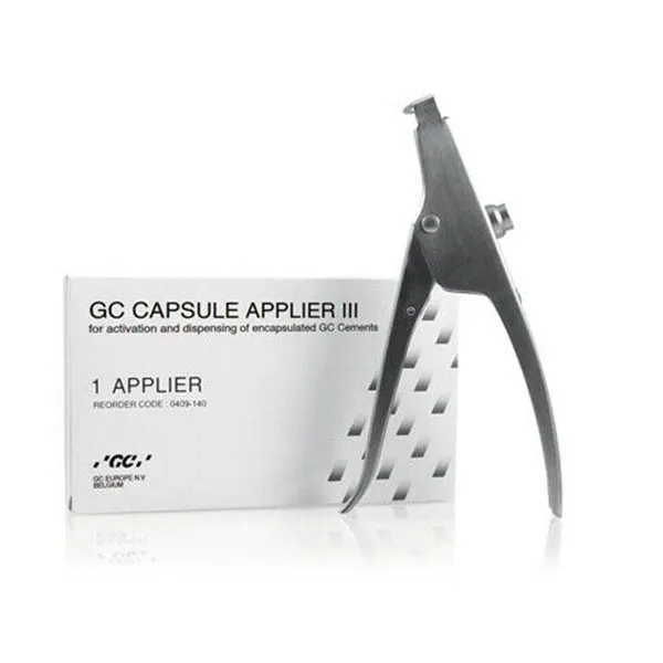 The GC CAPSULE APPLIER IIIÂ is designed to be used with all GC encapsulated glass ionomer products to facilitate easy dispensing of the mixed materials directly to the tooth preparation.It pre-activates the capsule and dispenses the material. The GC CAPSULE APPLIER is autoclavable and easy to clean.