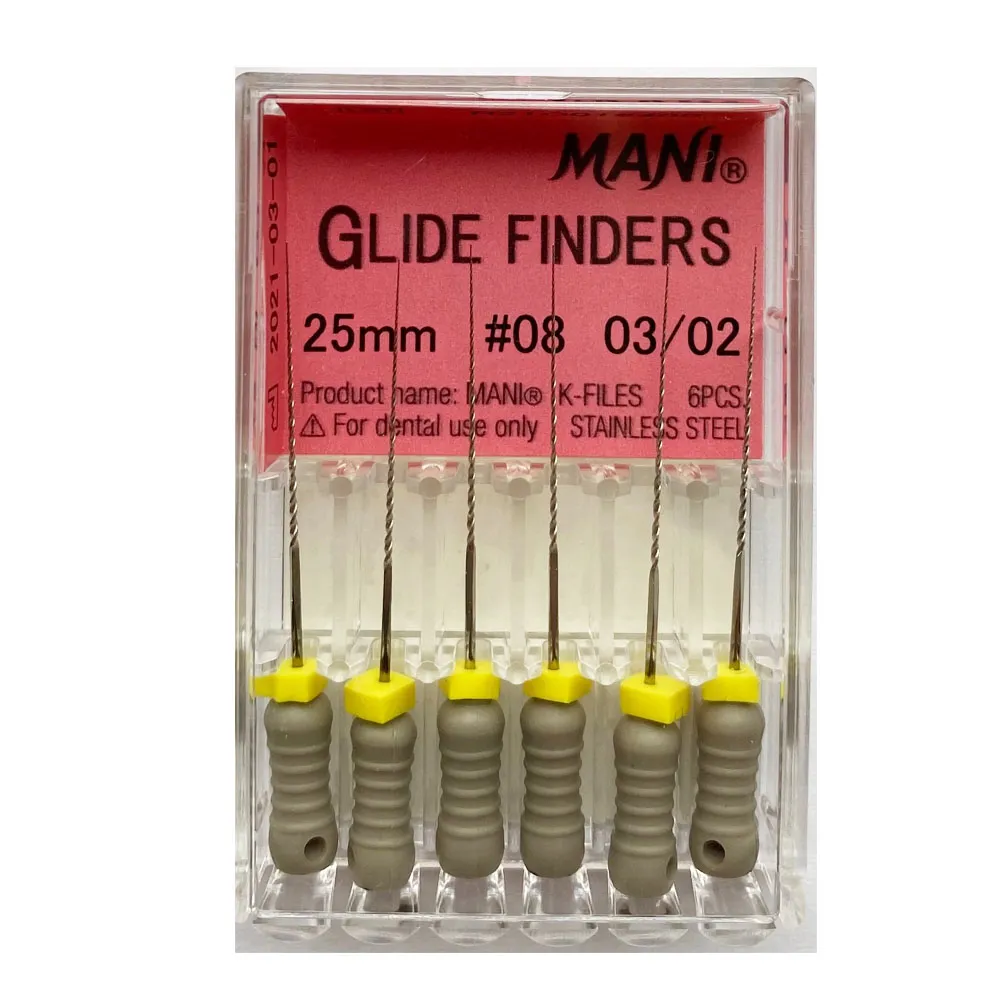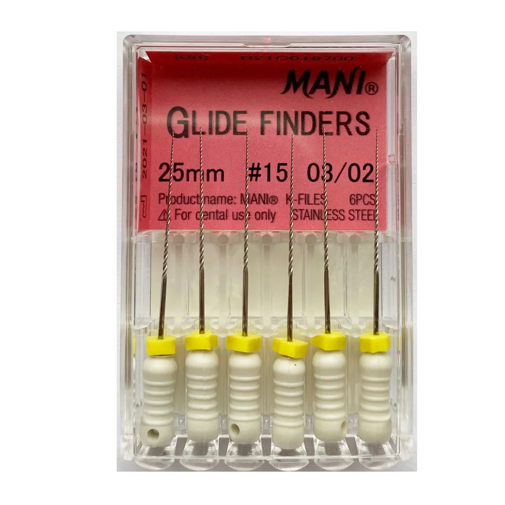 MANI Glide Finders 25mm – precision-engineered endodontic files designed to establish a flawless glide path with extended reach. These meticulously crafted files feature a unique multi-tapered design, combining a 3% taper at the tip and a 2% taper along the shank for optimal resistance and flexibility. With lengths extended to 25mm, these files provide enhanced access, making them ideal for navigating diverse root canal anatomies. Experience efficient calcification penetration and choose from various ISO sizes, including #08, #10, #12, and #15, ensuring versatility for a wide range of endodontic procedures. Elevate your practice with MANI Glide Finders 25mm – where extended reach meets unparalleled precision. Trust MANI for cutting-edge solutions in endodontic instrumentation.