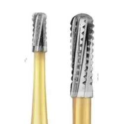 Great White Burs designed to cut metal substructures for restoration removal during endodontic treatment.