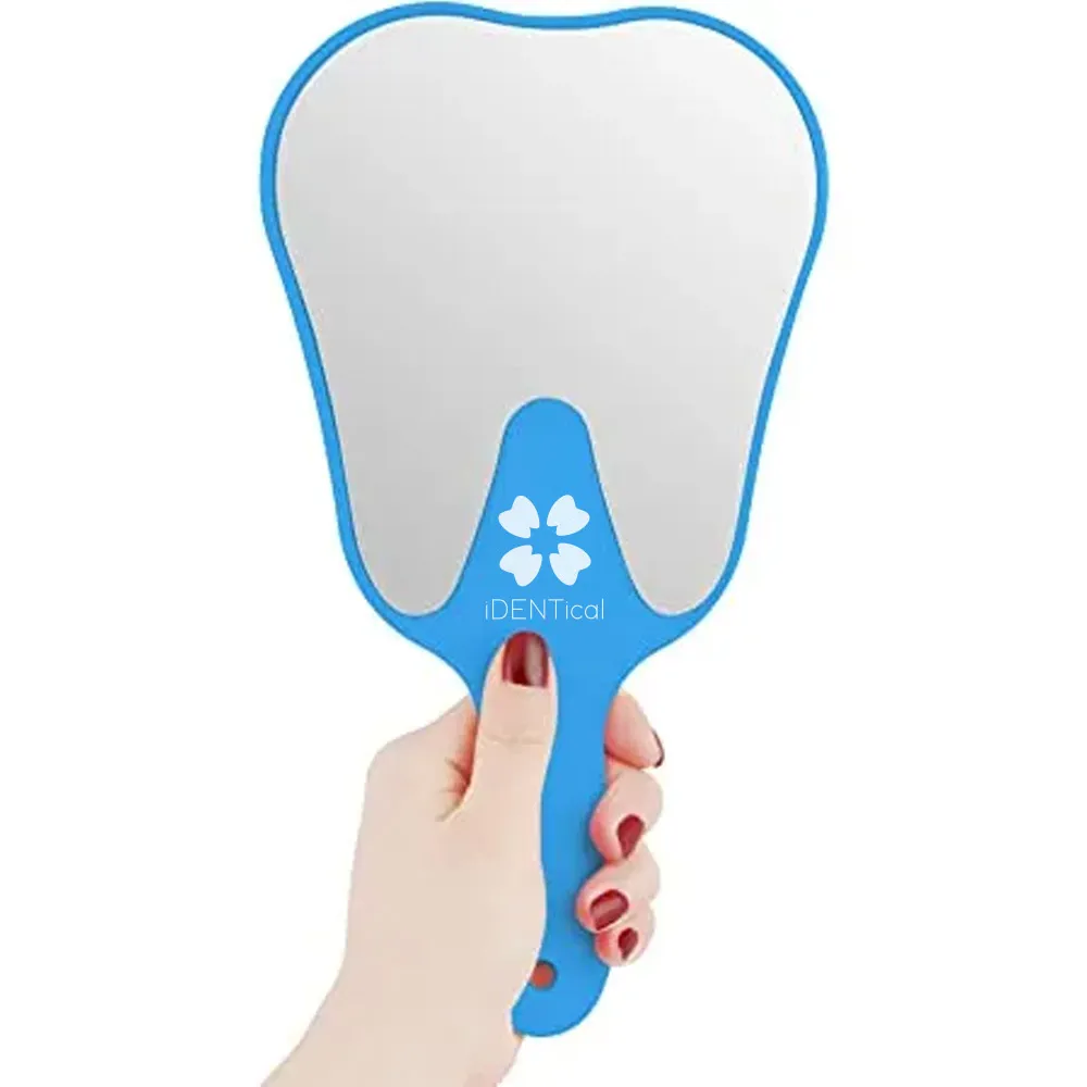 iDENTical tooth Shaped hand Mirror – White is a useful tool for patient education and motivation.