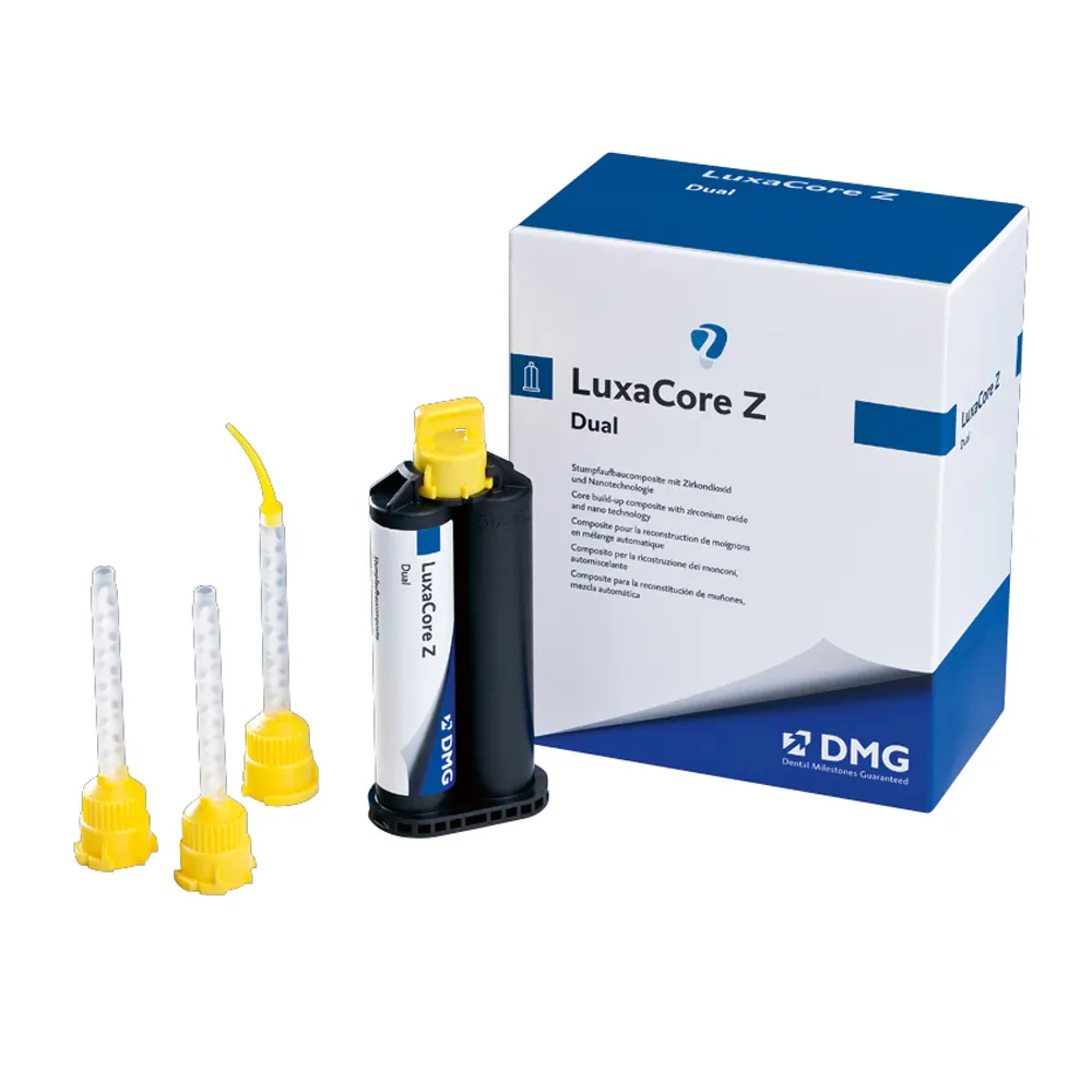LuxaCore Z-Dual from DMG America, the ultra-strong, ultra-reliable core build-up material created with zirconia. Its combination of zirconia filler with DMG’s patented nanotechnology means it significantly improves strength, flowability and physical properties – it’s the ultimate in resin technology! LuxaCore Z-Dual also works for your post cementing needs. Available in Natural, Blue and Light Opaque shades.