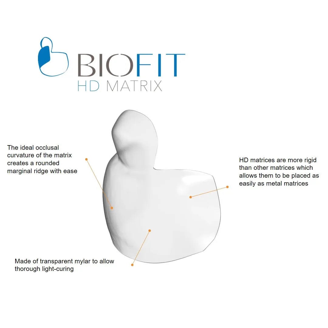 - 30% more buccal/lingual and occlusal wrap than traditional matrices