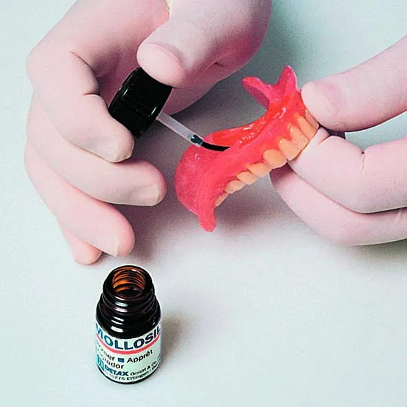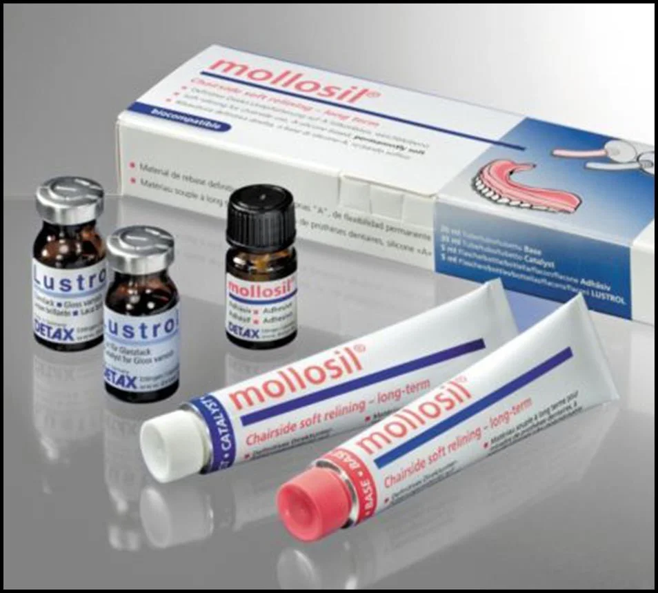 Long-term relining material for chairside use, A-silicone based, permanently soft, cold curing. Secure bonding to the denture acrylic. For manual mixing, mixing ratio 1:1. Also suitable for immediate dentures. Biocompatible, taste- and odourless. Also suitable for application with the indirect technique.