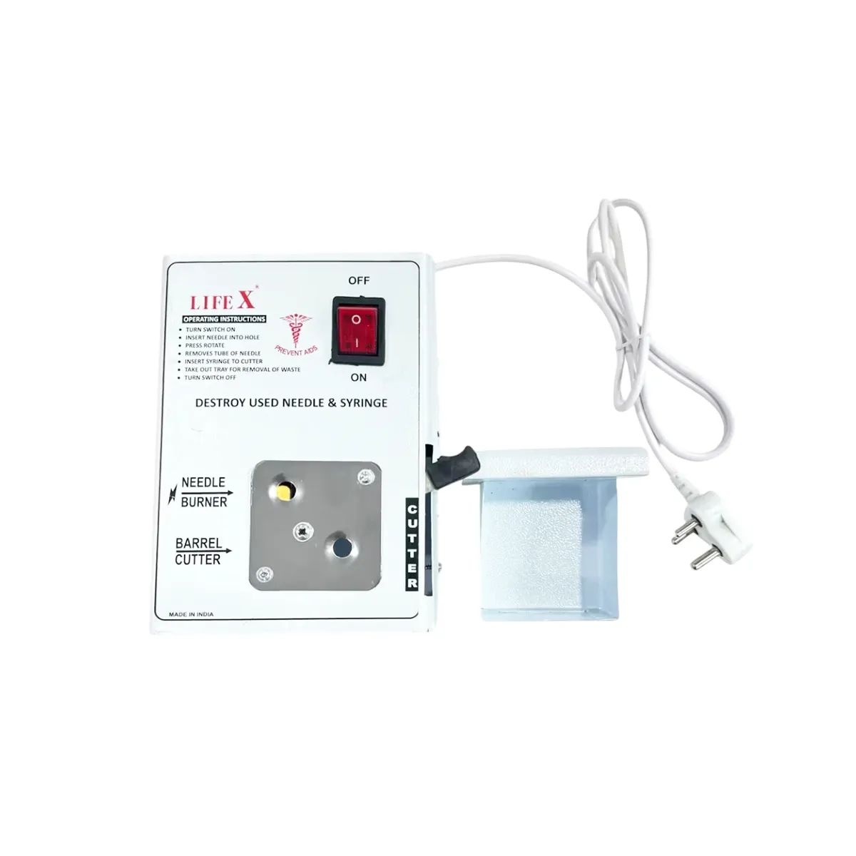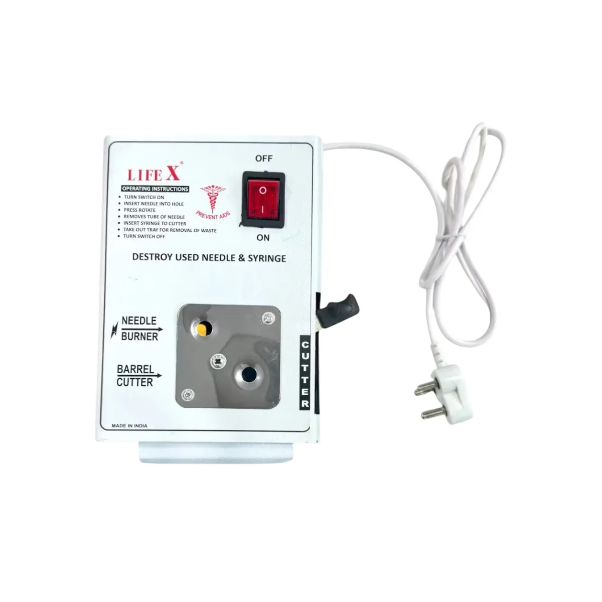 It is electrically operated, compact equipment, specially designed to destroy and mechanically cut used disposable needles and syringes with ease.