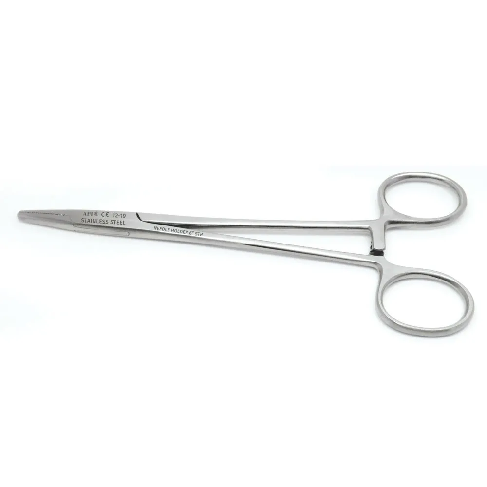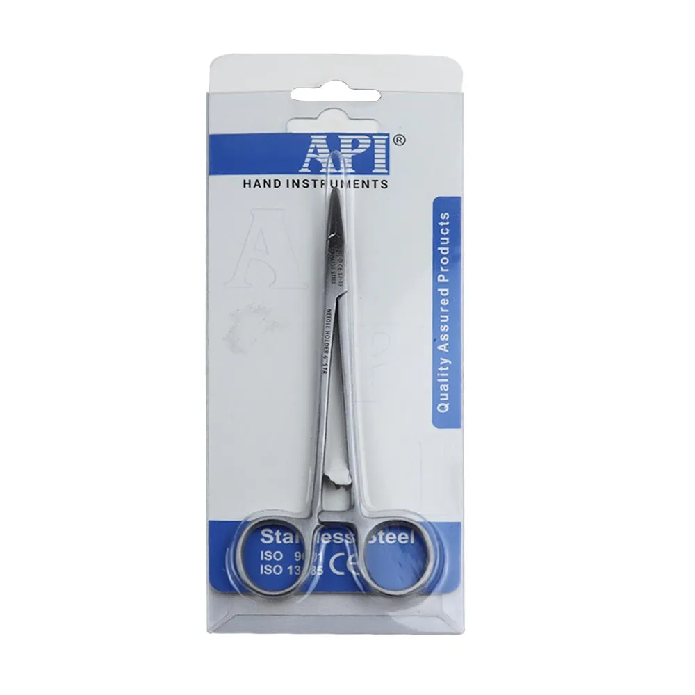 API Needle Holder Mayo-Hegar – Straight (16cm) (NHMH)Â is a specialized dental instrument designed for precision and reliability during suturing in dental procedures. This tool is widely used in oral surgeries, periodontal treatments, and other dental procedures requiring secure handling of needles for stitching tissues. With a straight design and a length of 16 cm, it offers excellent control and accessibility, making it suitable for various intraoral applications. Its serrated jaws ensure a firm grip on the needle, preventing slippage and allowing for accurate suturing in delicate areas. The ratchet-lock mechanism provides precise tension control, enhancing ease of use and efficiency during procedures. Made from high-quality stainless steel, this needle holder is durable, corrosion-resistant, and easy to sterilize, ensuring it meets the rigorous standards of dental practice. It is an essential tool for dental professionals seeking precision and efficiency in surgical and restorative procedures.