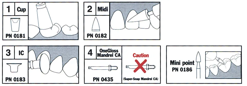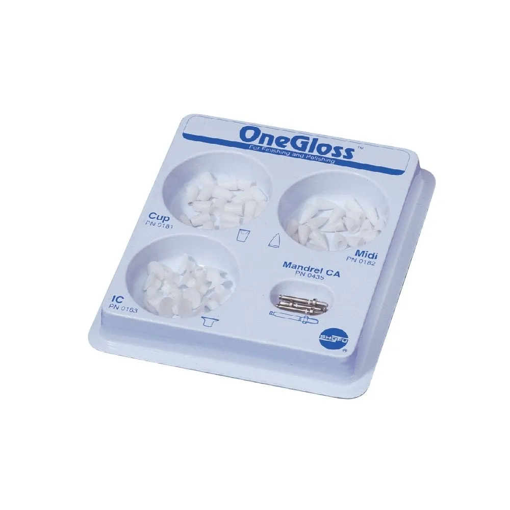 Shofu OneGloss is an aluminum oxide one-step finisher and polisher that provides the ideal finish for all types of composite and cemented restorations simply by altering the contact pressure as you go from finishing to polishing.