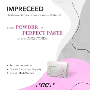 Features- Ideal for orthodontic models, study models, temporary crowns and bridges, and antagonist models in both fixed and removable prostheses. Impreceed provides a balance of good drip resistance and fluidity to effectively provide coverage enabling detailed impression-taking with minimal discomfort to the patient. Impreceed has good compatibility with hard stones producing smooth and precise detail…