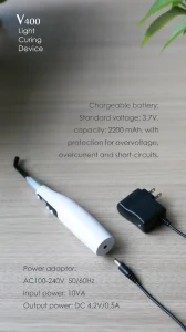 Description-  LED light Features: 5W blue LED Light Wave Length: 400nm~515nm Accessible emission limit (AEL) : 3.9*10-3 Checking: LED light is working when Correctly Operate Class: II Class New weight : 132g Radiation: 1000mW/cm² ~ 1400mW/ cm² Optical effective area of Optical fiber : 50mm²  Chargeable battery: Standard valtage: 3.7V , Capacity: 2200mAh, with Protection for OverVoltage, Overcurrent and short-circuits. POWER Adaptor: AC 100-240V…